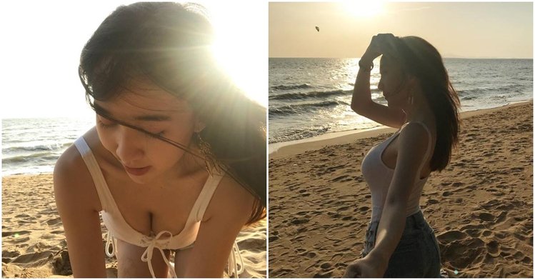 黑直髮氣質正妹!夕陽下低胸U型小背心 「美胸敞開超閃耀」狂飄女神味